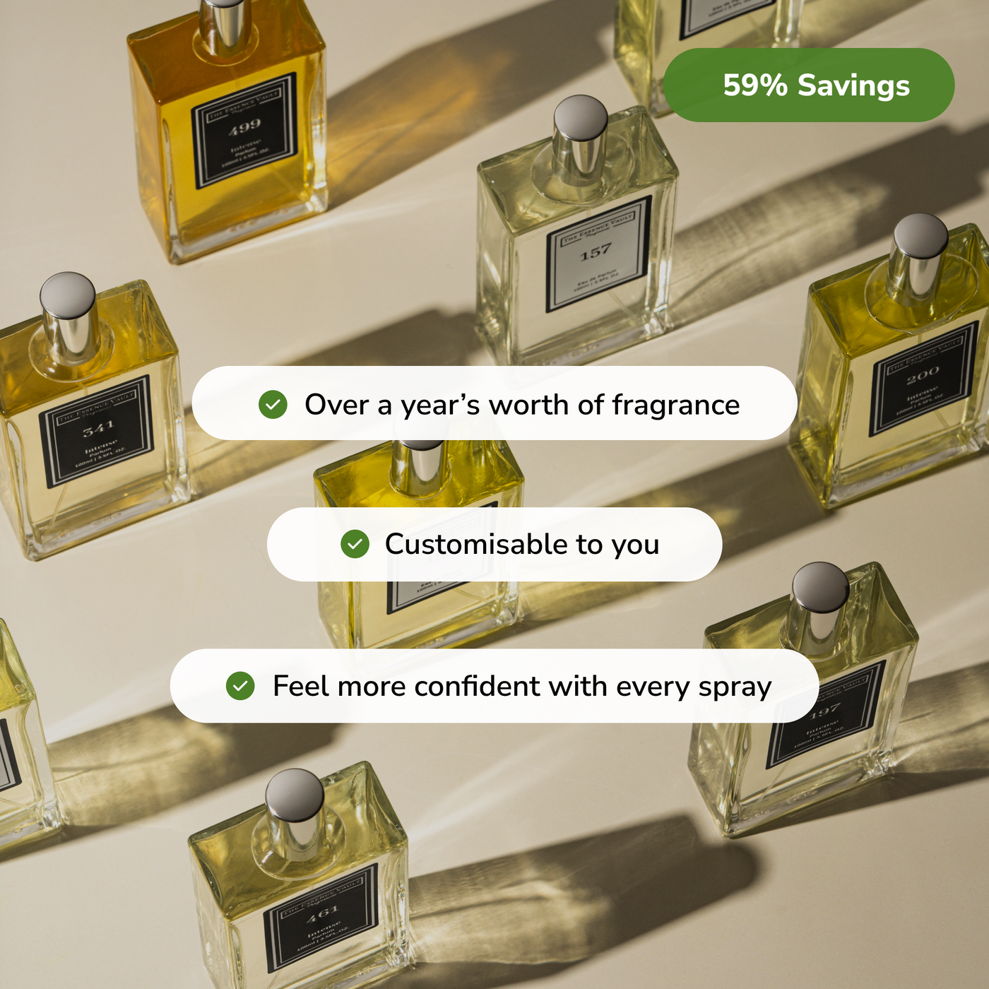 Craft your ultimate fragrance wardrobe and unlock phenomenal savings! Select any five of our signature 100ml Eau de Parfums, each inspired by the world's most coveted scents. This is your opportunity to explore a wide array of olfactory experiences, stock up on your beloved favourites, or curate a truly personalised and generous gift collection, all while enjoying a spectacular discount of over 50%.